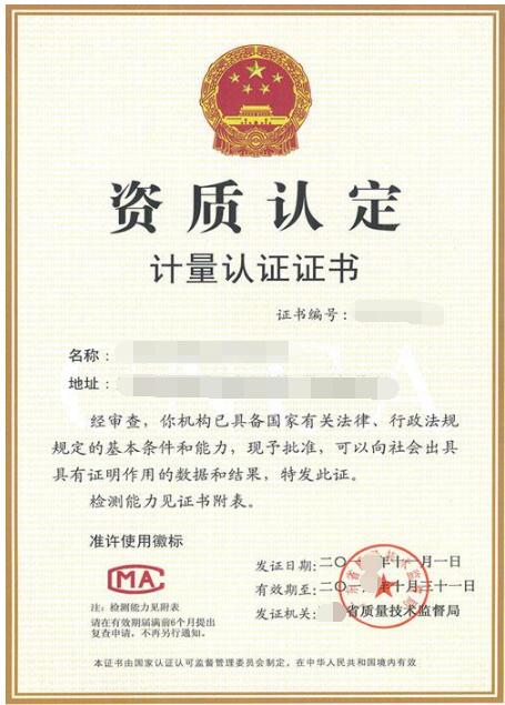 CMA中国计量认证