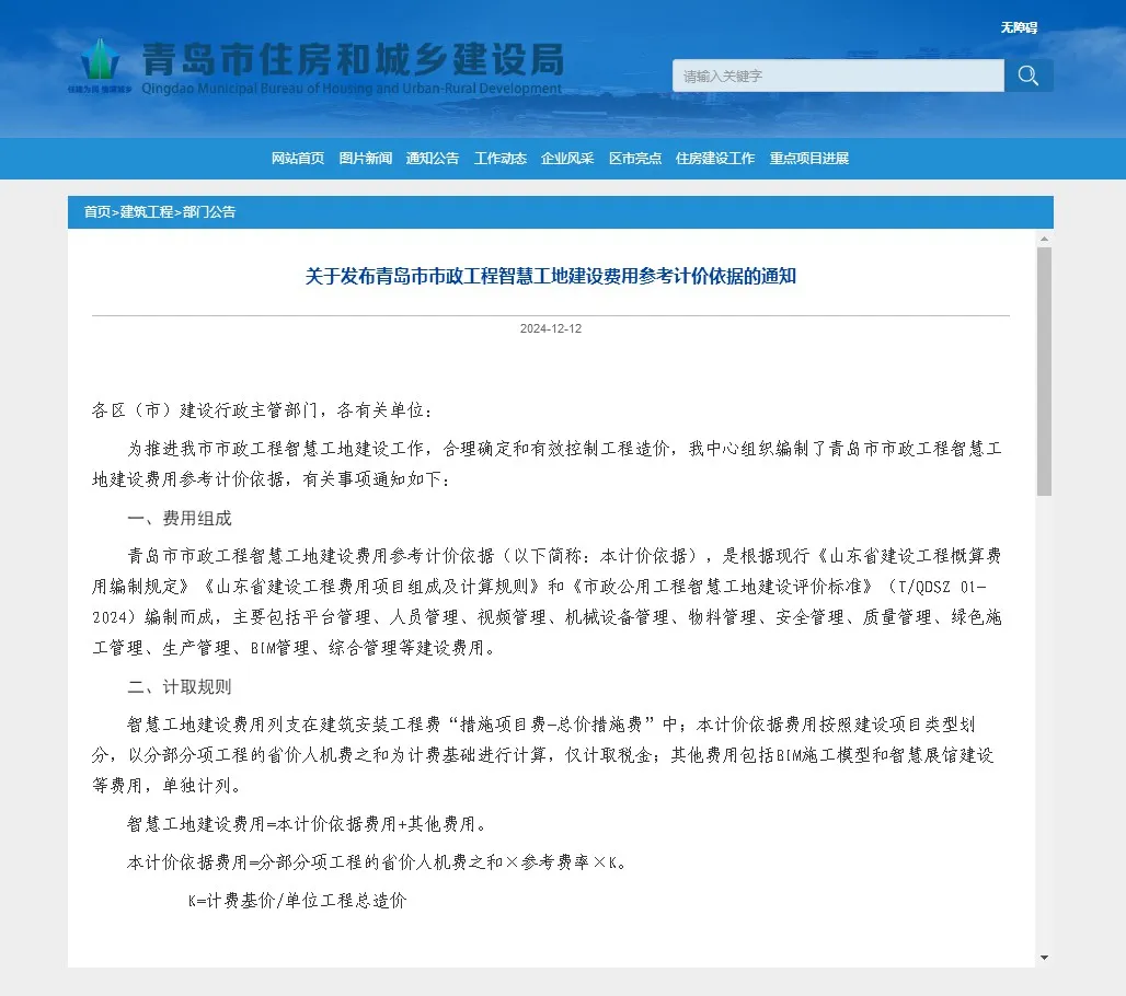 集團牽頭參編的《青島市市政工程智慧工地建設費用參考計價依據(jù)》正式發(fā)布