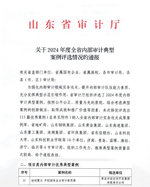 集團研究型審計初獲成果——獲評2024年度全省內部審計優(yōu)秀典型案例