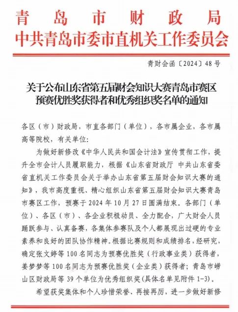 集團在山東省第五屆財會知識大賽青島市賽區(qū)獲得佳績