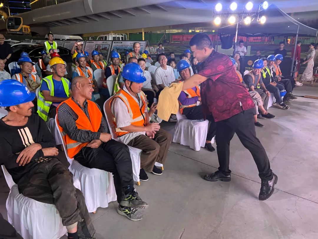 當(dāng)前,海爾路-銀川路立交工程正處于項(xiàng)目建設(shè)的沖刺階段,本次慰問(wèn)演出可謂恰逢其時(shí),不僅豐富了項(xiàng)目建設(shè)者們的精神文化生活,更提振了大家團(tuán)結(jié)一心、干事創(chuàng)業(yè)的精氣神。接下來(lái),項(xiàng)目全體人員將以高度的責(zé)任感和使命感,理清管理思路,發(fā)揚(yáng)“說(shuō)了算、定了干、高質(zhì)量、按期完”的“新市政鐵軍精神”,高標(biāo)準(zhǔn)、嚴(yán)要求,確保實(shí)現(xiàn)十一月項(xiàng)目整體竣工的建設(shè)目標(biāo)。