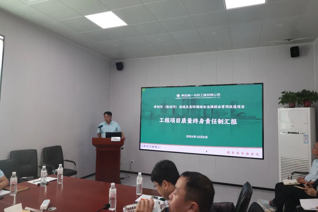 集團(tuán)安質(zhì)環(huán)部在項(xiàng)目部會(huì)議室匯報(bào)了集團(tuán)質(zhì)量終身責(zé)任制開展情況及進(jìn)行質(zhì)量管理成果交流活動(dòng)的意義和目標(biāo)。第一市政兩河流域項(xiàng)目部從管理目標(biāo)和項(xiàng)目組織、質(zhì)量管控和終身責(zé)任制,以及黨建、廉建等方面出發(fā),匯報(bào)了開展質(zhì)量終身責(zé)任制的一系列措施和成效,以建立完善的質(zhì)量管理體系,執(zhí)行落實(shí)質(zhì)量終身責(zé)任制為依托,全面提升項(xiàng)目質(zhì)量管理能力和履約能力。