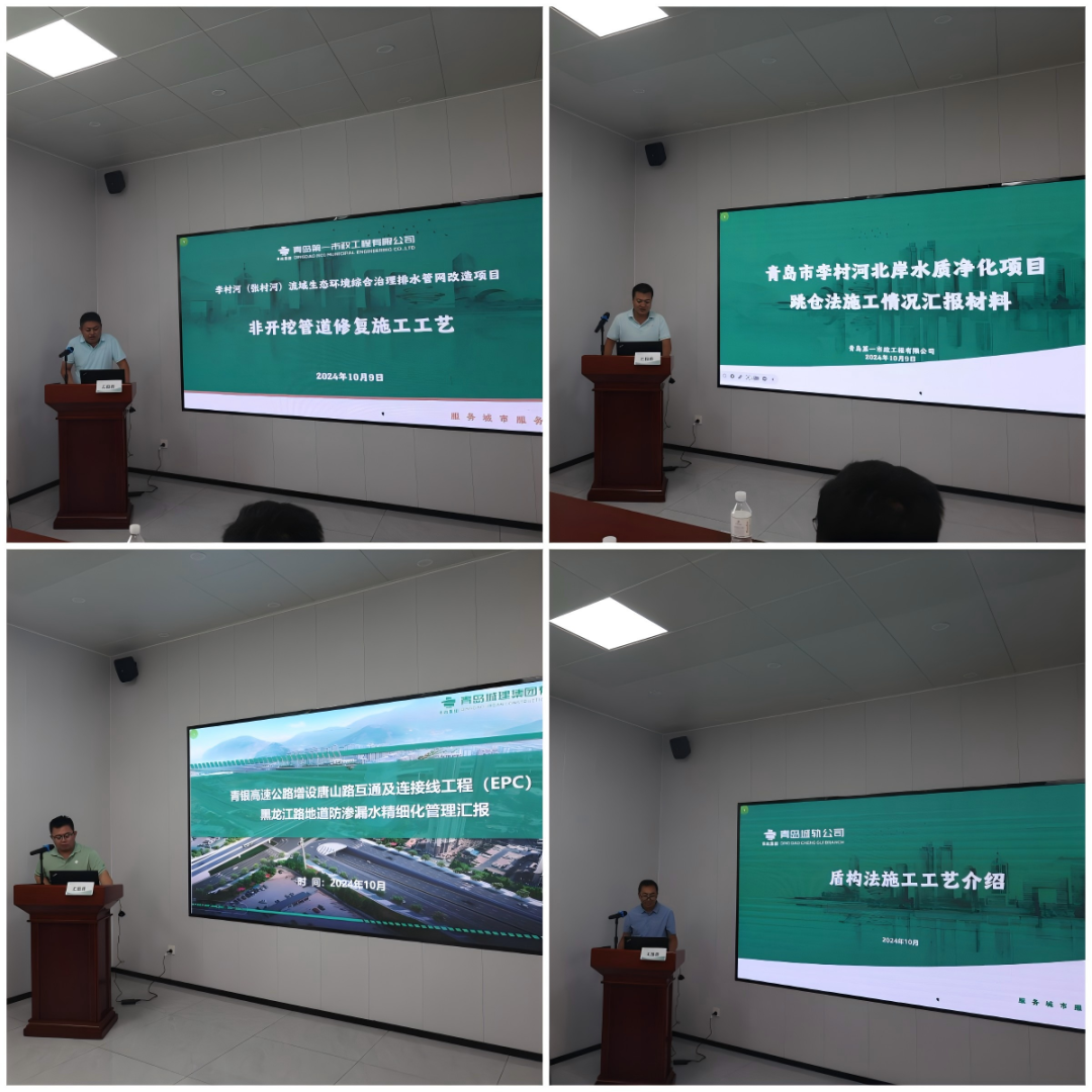 成果交流環(huán)節(jié),各單位代表逐一進(jìn)行了匯報(bào)。第一市政兩河流域項(xiàng)目副經(jīng)理仝西亞詳解了CIPP紫外光固化與碎管法兩項(xiàng)非開挖修復(fù)技術(shù),并分享了標(biāo)準(zhǔn)化施工工藝要點(diǎn);李村河北岸項(xiàng)目總工崔海洋匯報(bào)了項(xiàng)目部積極探索施工新方法的成功案例,通過采用跳倉(cāng)法等創(chuàng)新方案,成功優(yōu)化施工、縮短工期、提升質(zhì)量;城建公司唐山路地下通道項(xiàng)目總工侯繼濤以《地道防滲漏水精細(xì)化質(zhì)量管理》為主題,講解了地道工程防滲漏質(zhì)量控制措施;城軌公司盾構(gòu)項(xiàng)目部經(jīng)理于文龍展示了盾構(gòu)施工工藝的發(fā)展歷程、國(guó)內(nèi)應(yīng)用及盾構(gòu)機(jī)構(gòu)造,通過案例與數(shù)據(jù),讓參會(huì)者深刻體驗(yàn)盾構(gòu)施工。各參會(huì)單位領(lǐng)導(dǎo)對(duì)此次活動(dòng)進(jìn)行了發(fā)言,均表示通過此次活動(dòng)得以對(duì)標(biāo)先進(jìn)、深入學(xué)習(xí)、取長(zhǎng)補(bǔ)短,拓寬了質(zhì)量管理工作的視野。