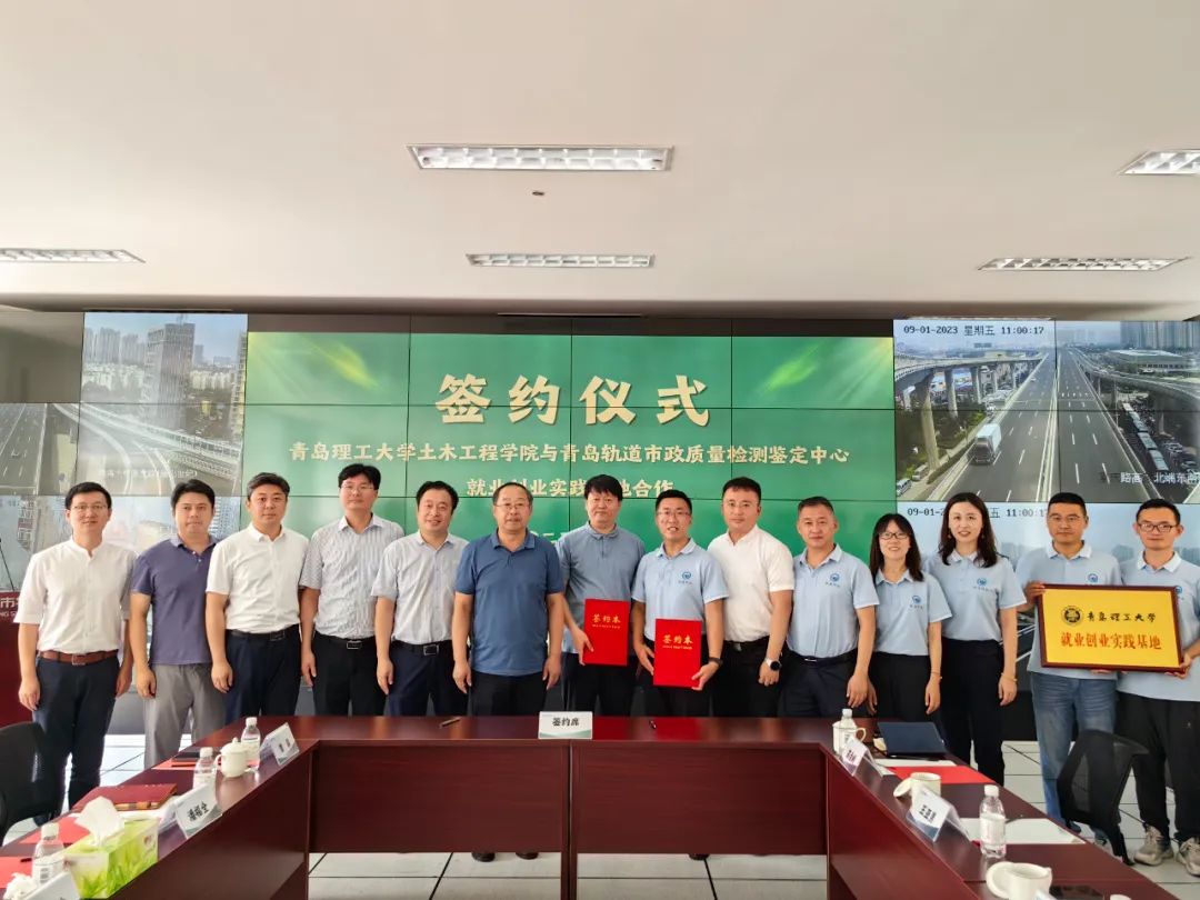 9月1日,青島理工大學土木工程學院與青島軌道市政檢測中心就業(yè)創(chuàng)業(yè)實踐基地合作協(xié)議簽約儀式在城市物業(yè)公司會議室舉行,理工大學土木工程學院黨委書記曲成平,院長侯東帥,副書記邵先鋒,青島市政空間開發(fā)集團工程管理部部長陳際洲,城市物業(yè)公司紀檢委員、工會主席趙鋒,副總經理曲健等出席了簽約儀式。理工大學土木工程學院以及城市物業(yè)公司綜合管理部、業(yè)務管理部、檢測中心相關負責人員參加活動。