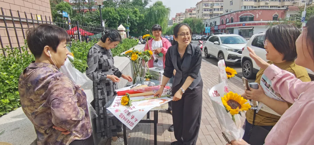 地鐵9號線項(xiàng)目部志愿服務(wù)隊(duì)來到城陽區(qū)職業(yè)教育中心考點(diǎn)附近,給參加高考的學(xué)子們加油鼓勁,為考生及家長送上誠摯的祝福。志愿者們將一支支向日葵搭配、包裝后,以“金榜題名”“一舉奪魁”的美好寓意,向廣大考生送去美好祝愿。