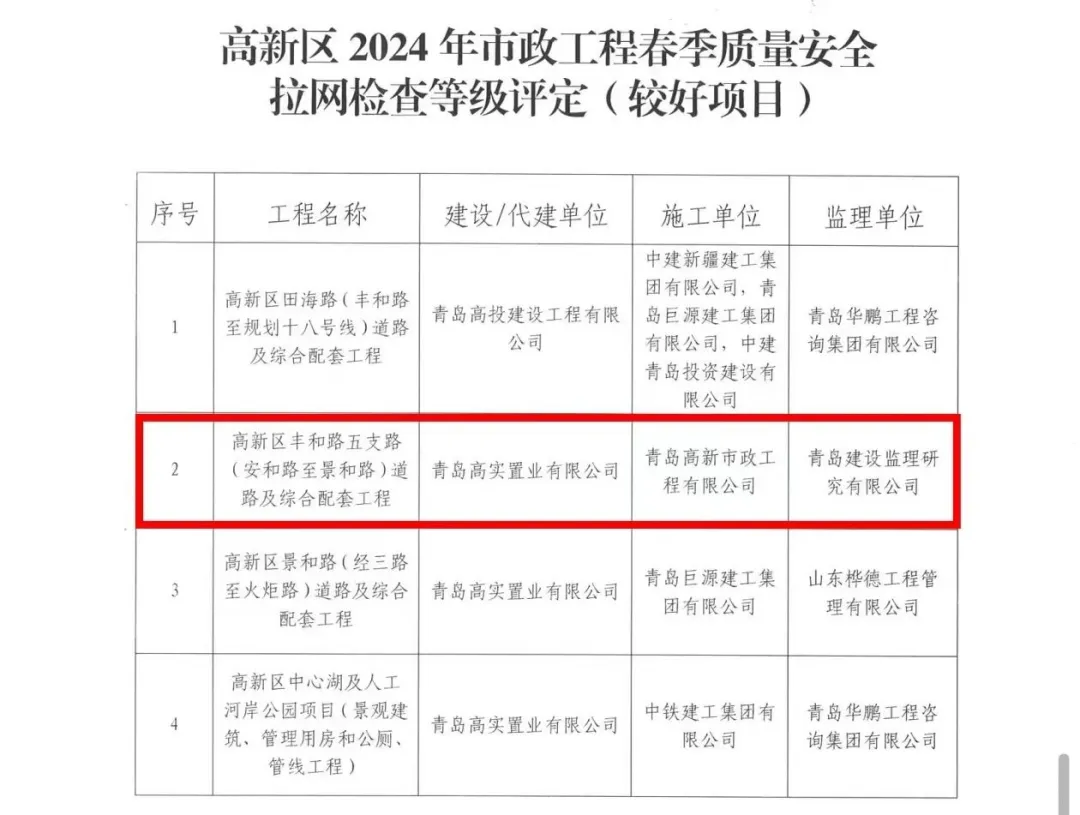 近日,青島市高新區(qū)建設(shè)部組織開展2024年市政工程春季質(zhì)量安全拉網(wǎng)檢查總結(jié)表彰大會,高新市政承建的高新區(qū)豐和路五支路道路及綜合配套工程獲表彰。