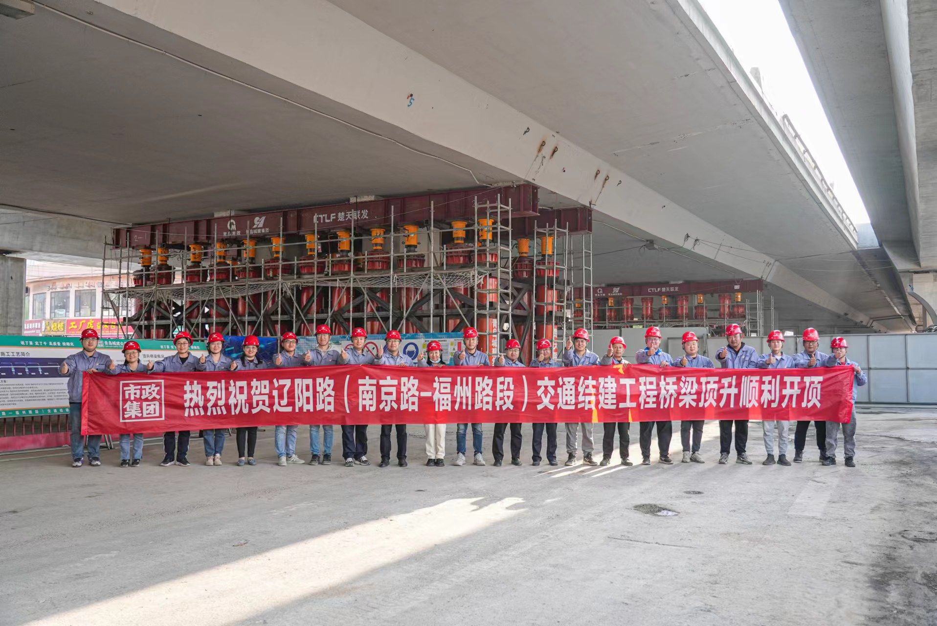 遼陽路(南京路—福州路段)交通結(jié)建工程46#、47#橋開始頂升